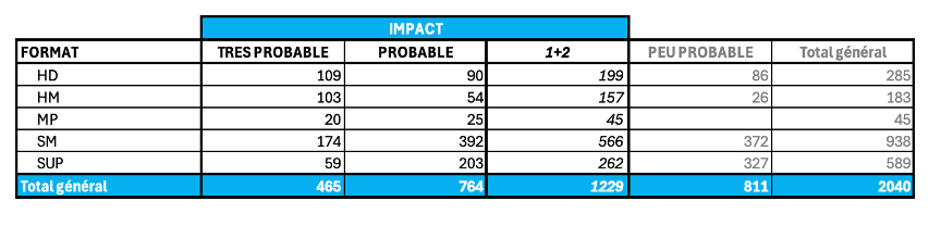 Notre matrice repère 465 cas d’impact « Très probable » et 764 cas « Probable